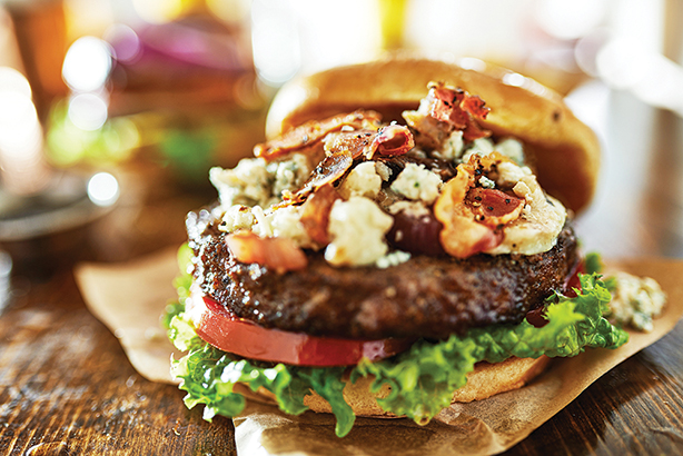 - Combine the cream cheese, blue cheese and bacon bits; spoon onto the center of six patties. Top with remaining patties and press edges firmly to seal.