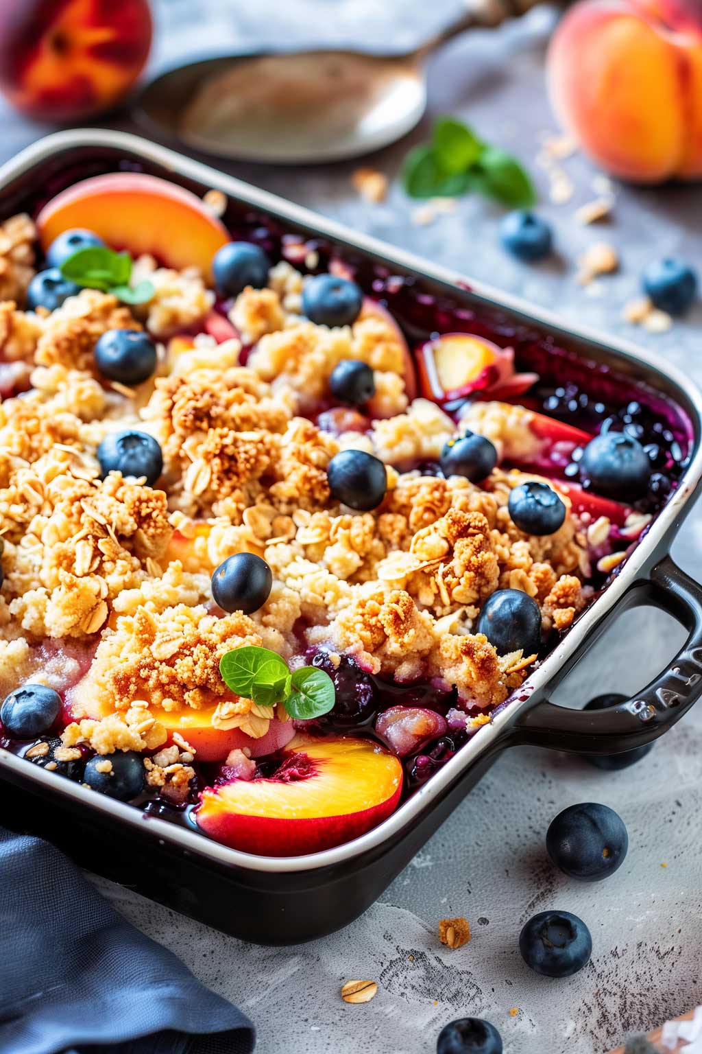 - Spread blueberry mixture in a shallow 2-½-quart baking dish