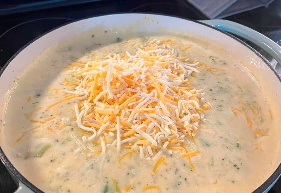 - After this cooking time, stir in the heavy cream and shredded cheese.