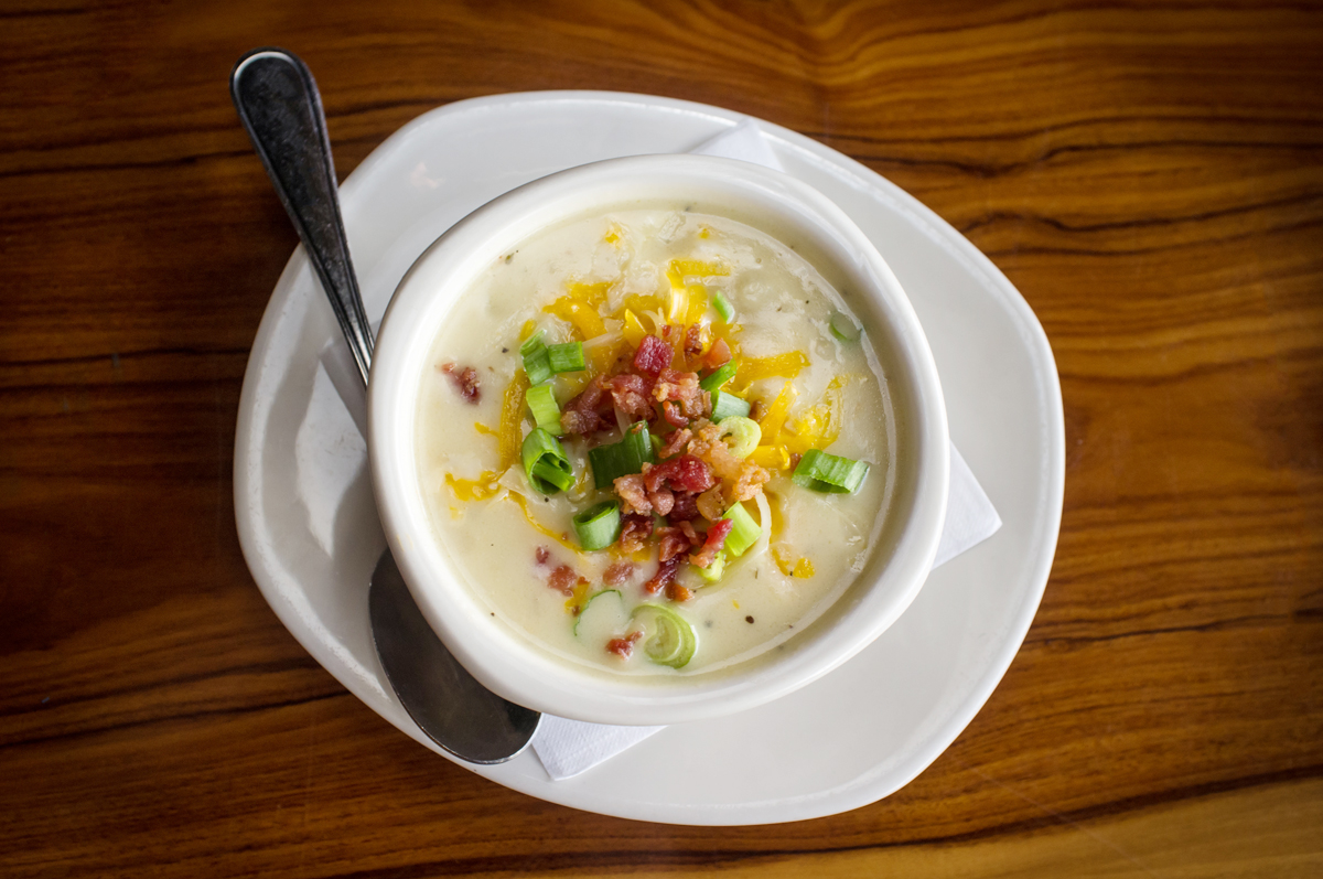 - In a large pot over medium heat, cook the bacon until crispy. Drain grease from the pot and add butter to bacon. Remove a few pieces for topping.