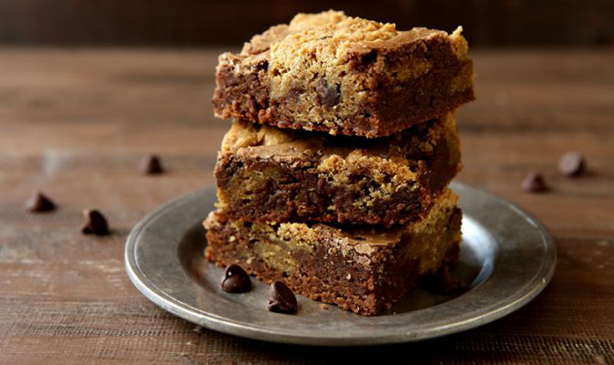 - Bake until brownies are set and tops of exposed cookie dough are golden brown, about 35-40 minutes. Let cool completely before slicing.