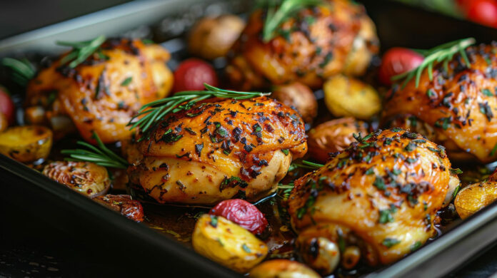 Tuck the sausages, apples and potatoes around the chicken. Cook for an additional 10 minutes, turning sausages about halfway through to cook evenly.