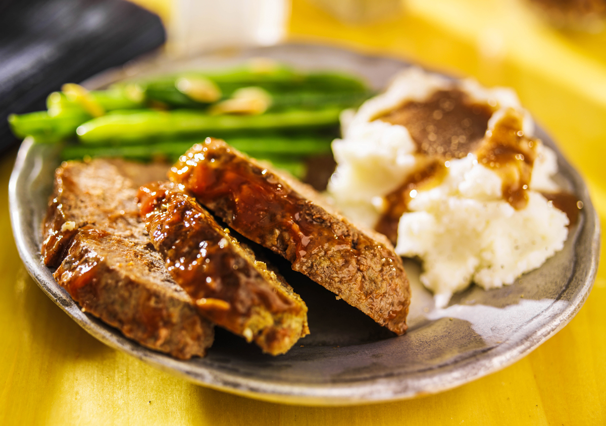- Place on upper oven rack in 350°F oven. Bake 45 to 55 minutes, until instant-read thermometer inserted into center registers 160°F; brush with remaining 1/4 cup ketchup during last 10 minutes, if desired. Let stand 10 minutes. Cut into slices.