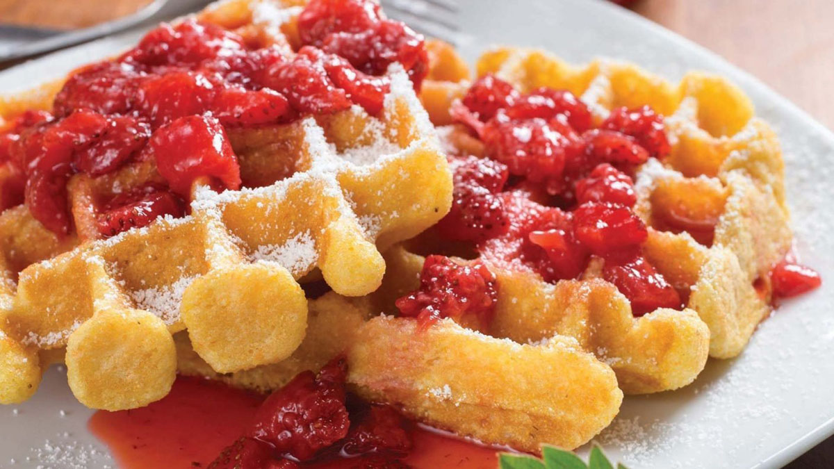 4. Drop 1/3-cup batter onto a hot waffle iron. Bake until the waffles are golden and crispy and the waffle iron stops steaming.