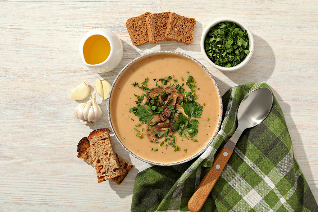 - Allow the soup to cool slightly and then transfer two-thirds to a blender and blend until smooth. Stir the blended soup back into the pot with the chunky soup.