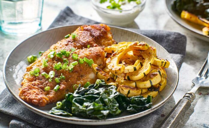 5. One by one, dip catfish fillets in the milk, and shake off any excess, then coat milk-soaked fish in the cornmeal mixture on both sides. Place fish in the hot skillet and cook until golden brown on each side (about 5-7 minutes per side). The fish will flake easily with a fork when it’s done.