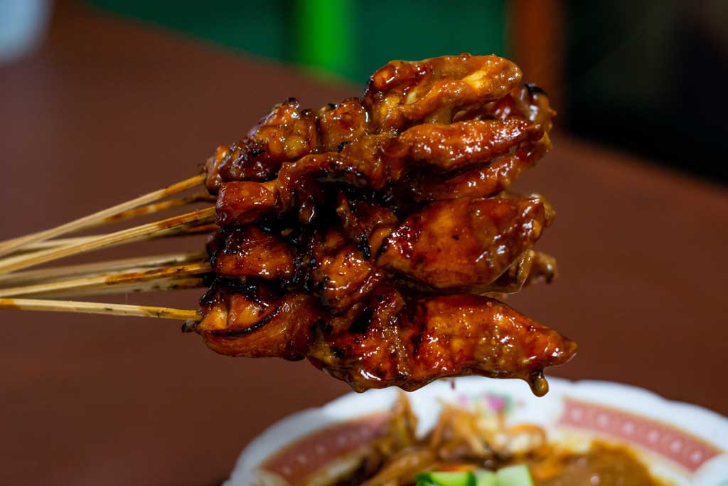Slide skewers lengthwise through each piece of chicken breast. Place skewered breasts in marinade and let stand 1 hour. Grill chicken until done or lightly browned on each side. Remove from grill and serve with dipping sauce.