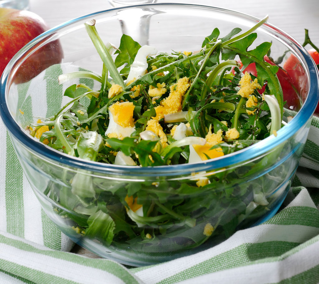 Gather the dandelion leaves early in the spring before the plants flower or they will be bitter.