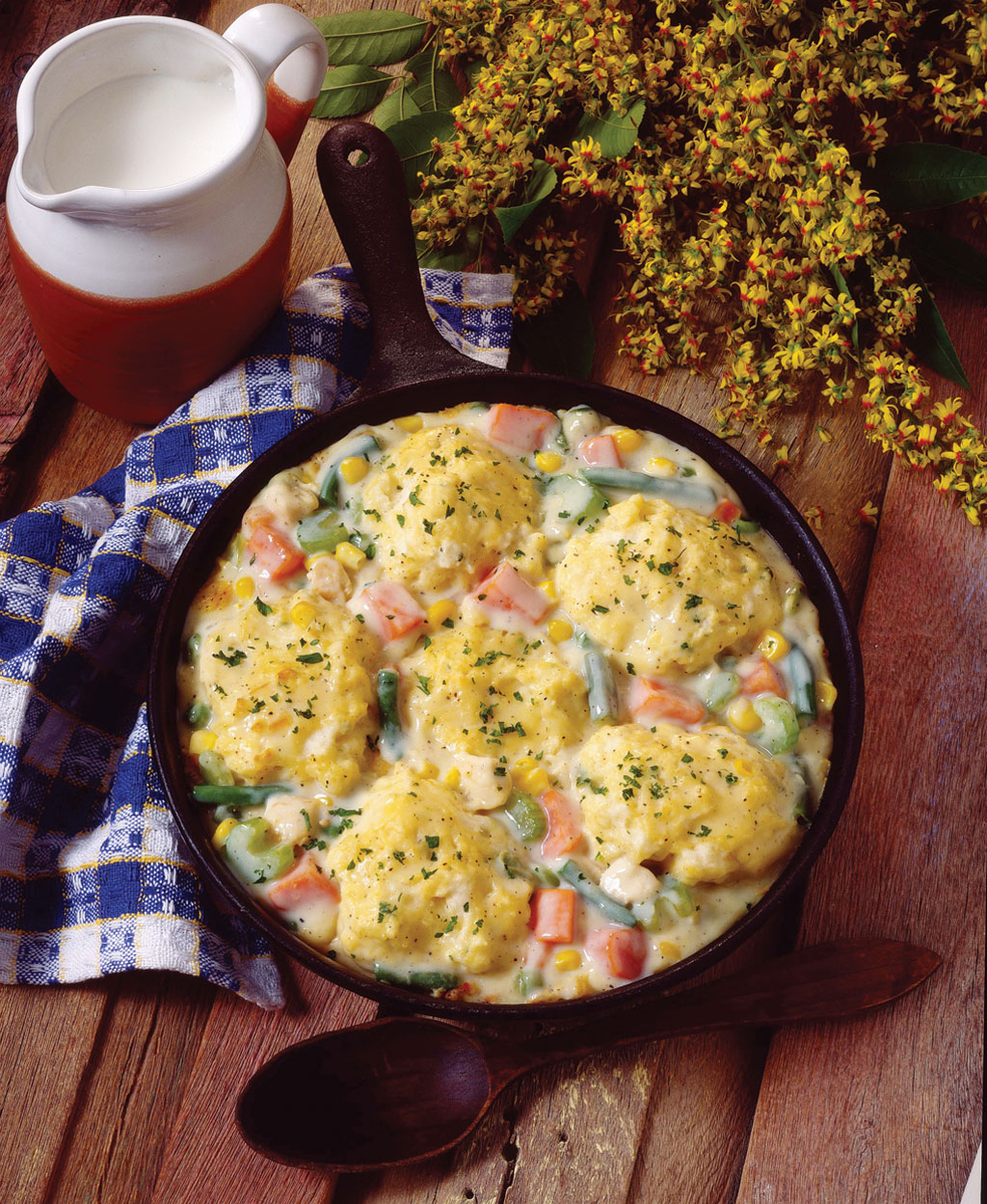 Combine all ingredients except for biscuits in slow cooker. Cover and cook on low setting 5 to 6 hours. Approximately 30 minutes before serving meal, tear the refrigerated biscuits into small pieces and add to slow cooker mixture, stirring gently. Re-cover and let cook remaining minutes until biscuits are fluffy and thoroughly cooked.