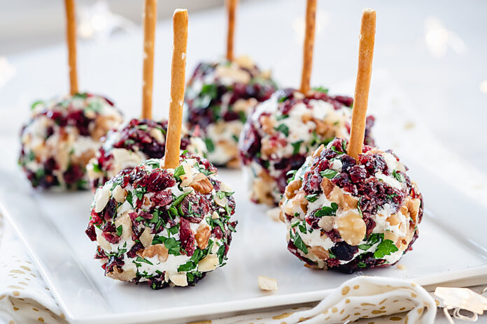 4. Combine the remaining pecans and cranberries and the chopped chives in a small dish. Gently roll each ball in the mixture and place on a serving platter.