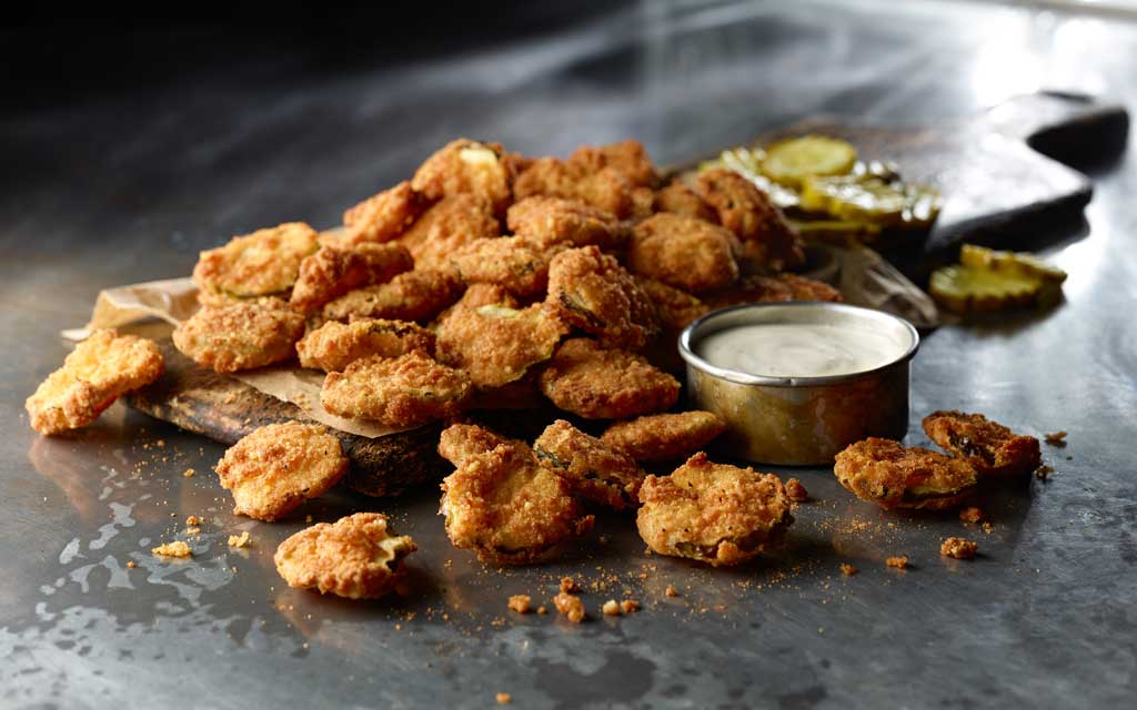 - Dip pickles into egg mixture; roll in crumb mixture to coat.