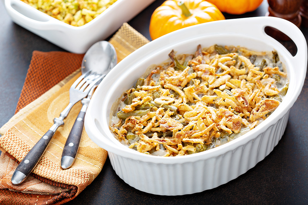 - Transfer to a 13-by-9-inch baking dish. Bake green bean casserole until warmed through and bubbling, about 30 minutes.