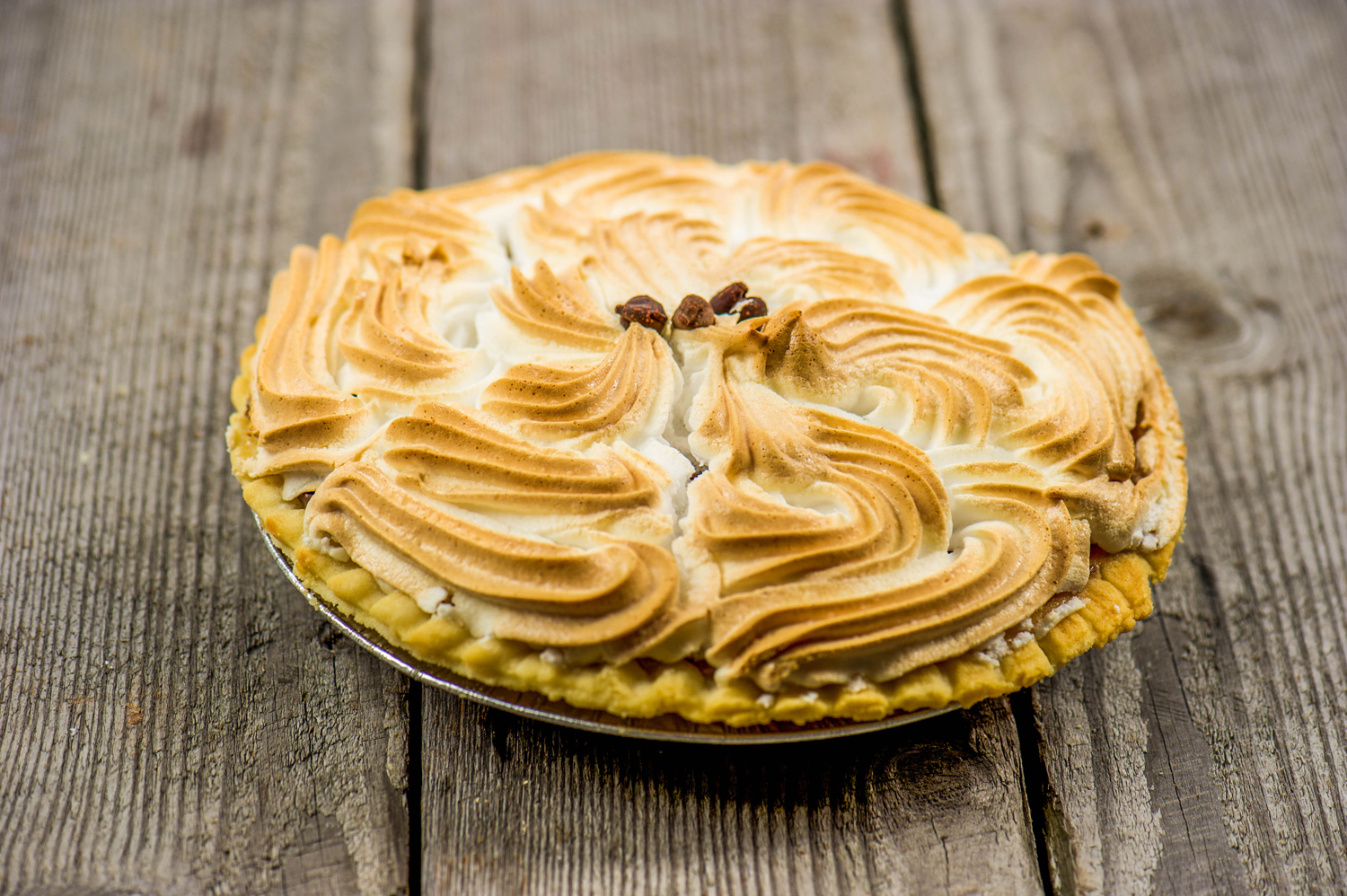 - For the meringue: Beat egg whites until slightly foamed. Add vanilla and beat until stiff. Add fruit sugar, beating after each spoonful. Spread meringue over cooled pie and brown in moderate oven.