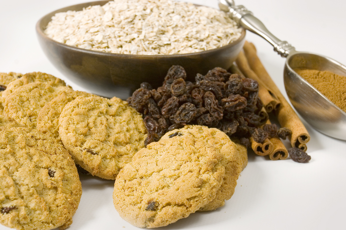 - In a large bowl, cream the butter, sugar and condensed milk until pale. Mix in the flour, oats and cinnamon and then finally the raisins.