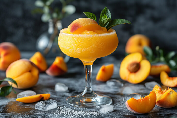 - Top drink with a peach slice or add to rim of the glass with fresh mint.
