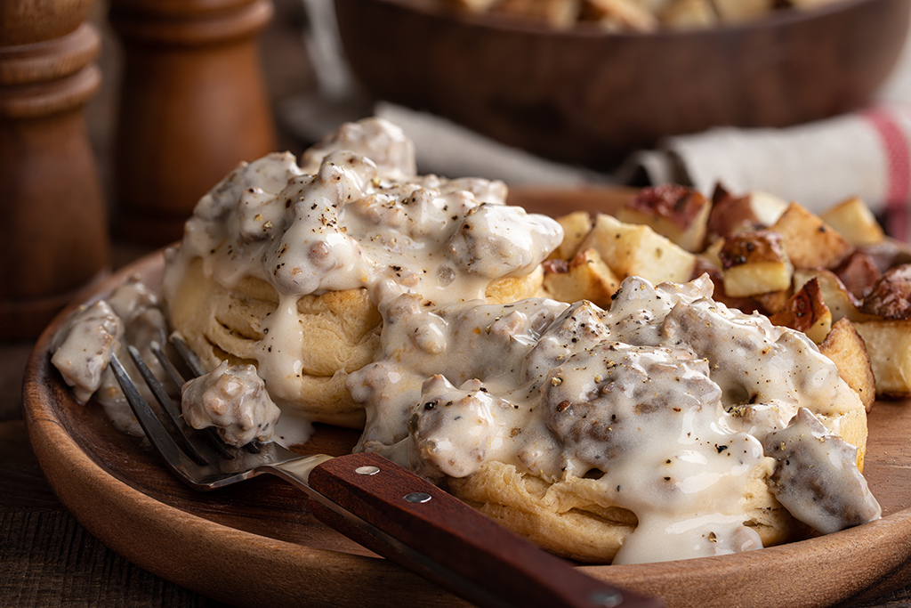 - 2 (2 3/4 oz.) pkgs. peppered gravy mix, prepared