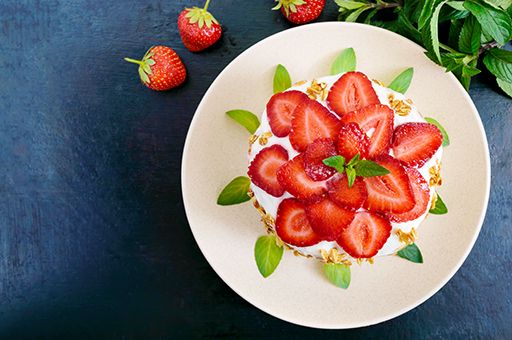 5. Top with strawberries and drizzle with strawberry sundae topping last.
