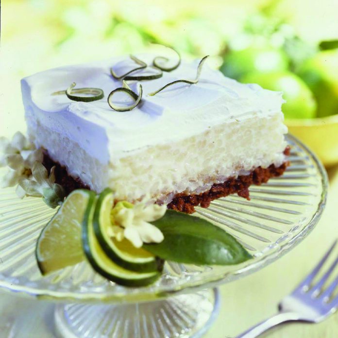 - Spread whipped cream over pudding. Cut into bars and garnish with lime peel, if desired.