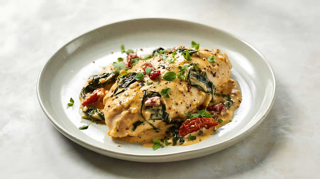Stuff each chicken breast with 1/4 cup spinach leaves, 1/8 cup roasted red peppers, 1/8 cup feta cheese, and about 1 tablespoon butter. Place on the prepared sheet pan and season generously with salt and pepper.
