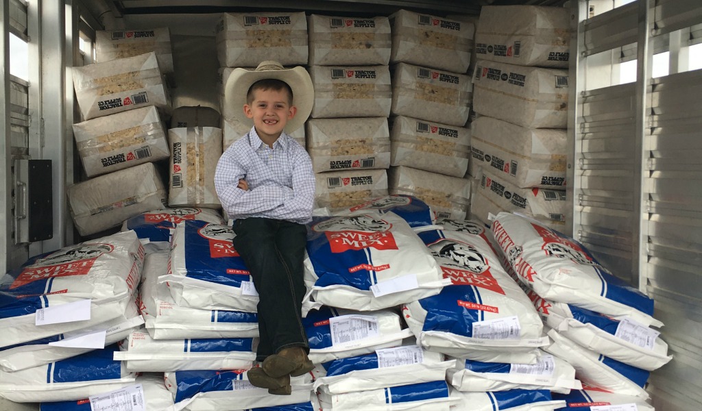 Cale, homeschooled by his mother, overheard his parents making plans for their own trip to Kansas, and decided he wanted to do something on his own to help. “He felt bad for the mommas that were burned in the fire and he wanted to take milk replacer for the baby calves,” said Casey.