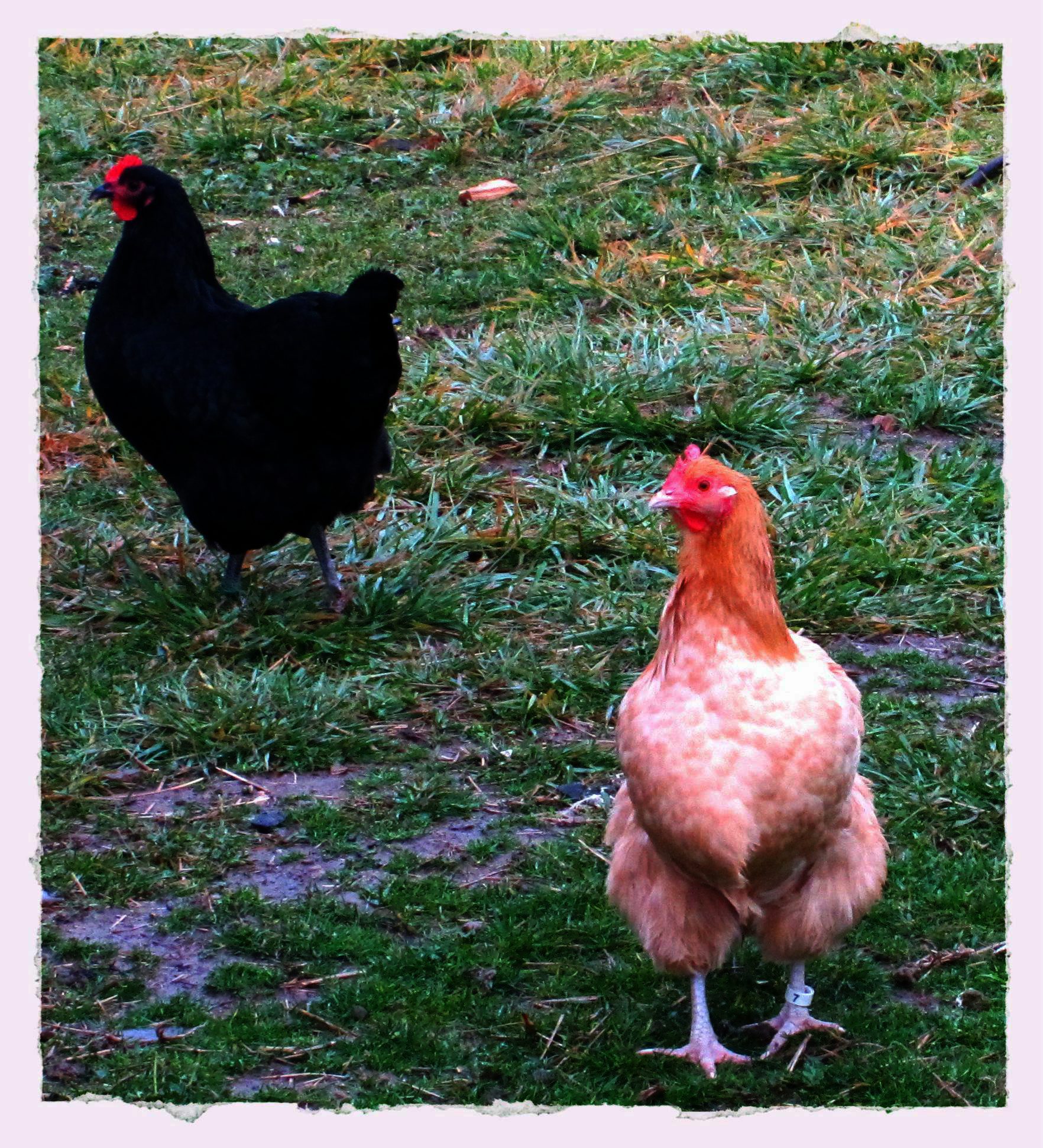 Black Australorp and Buff Orpington heritage chickens on Ivory Harlow’s Dickie Bird Farm.