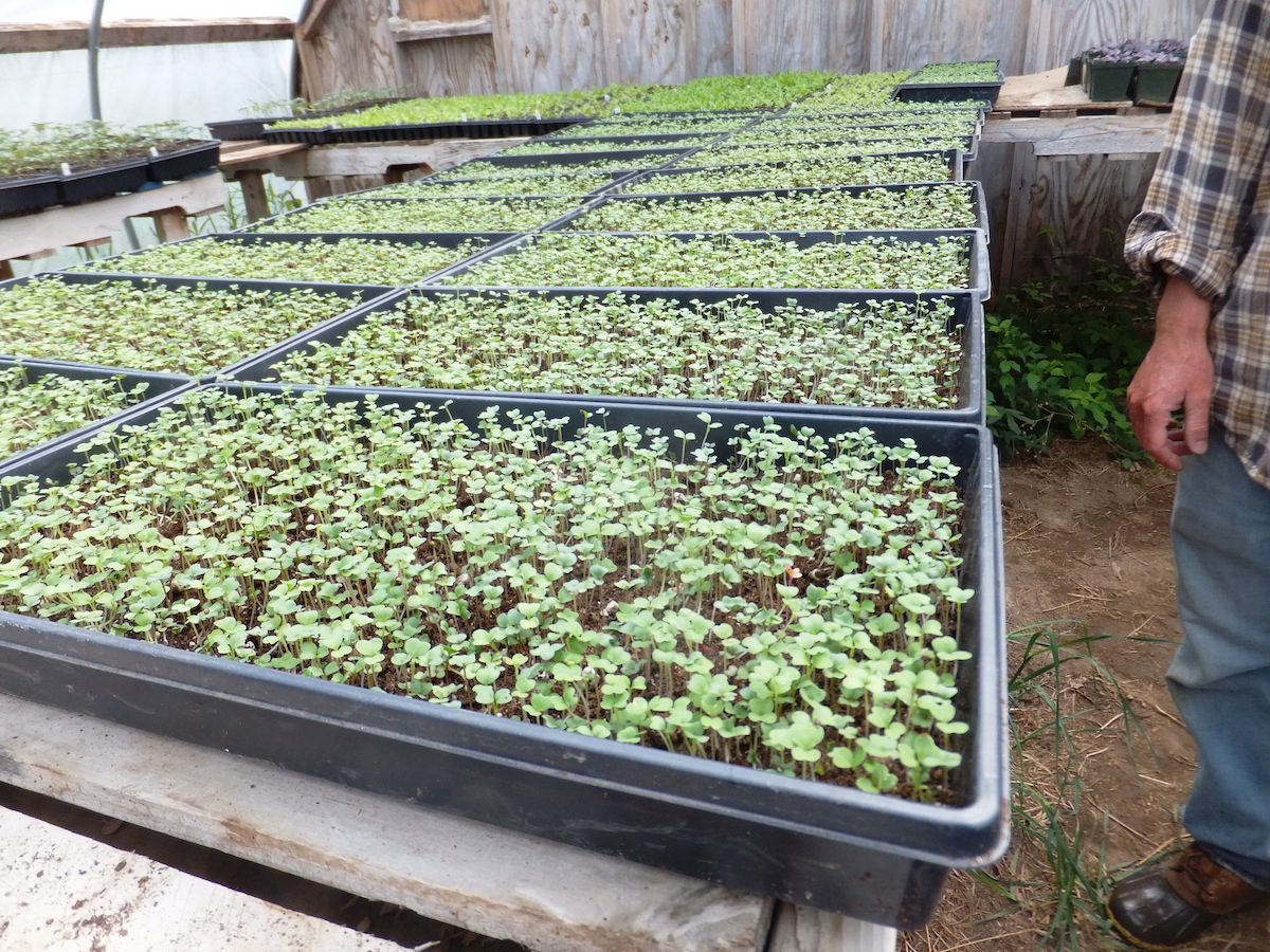 In his greenhouse, he grows trays full of micro-greens that take only a couple of weeks to grow to a harvestable size.