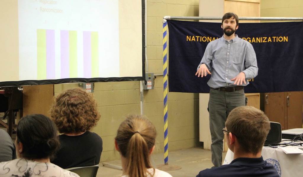 Steve Culman, state soil specialist and Ohio State assistant professor, OARDC, spoke with workshop attendees about the benefits of cover crops. Culman will be assisting Southeast FFA members with their cover crop research project over the next three years.