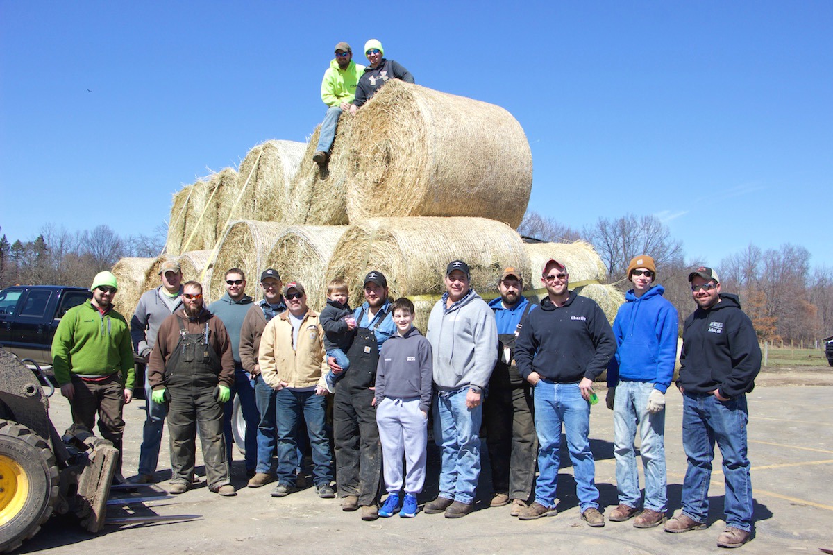 This group of local farmers and friends spent the afternoon, March 23, at Duma Meats in Portage County loading over 20 trucks of hay and supplies headed for Ashland, Kansas, March 24. (Catie Noyes photo)