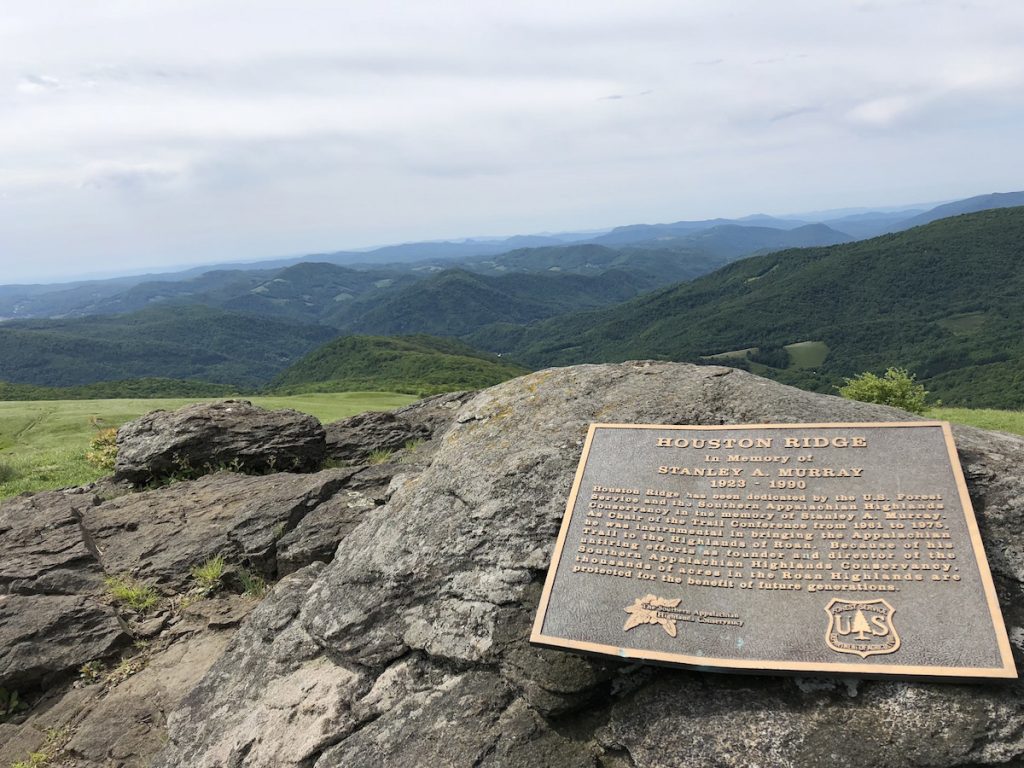 According to the Southern Appalachian Highlands Conservancy, "When construction of the Appalachian Trail was first 'completed' in 1937, it was about 45% on private property..." Stanley Murray worked to secure federal protection (the National Trails System Act passed in 1968) and was instrumental in protecting thousands of acres fro development for future generations to enjoy. This plaque honors his work, and a shelter along the AT also bears his name. (All rights reserved.)