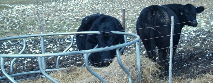 Unrolling large round bales is a practice which many of our producers have implemented where terrain and or equipment permit. If this method is used, only unroll enough feed for one day’s supply or use an electric wire over the middle of the unrolled swath to prevent trampling and bedding on the food source.