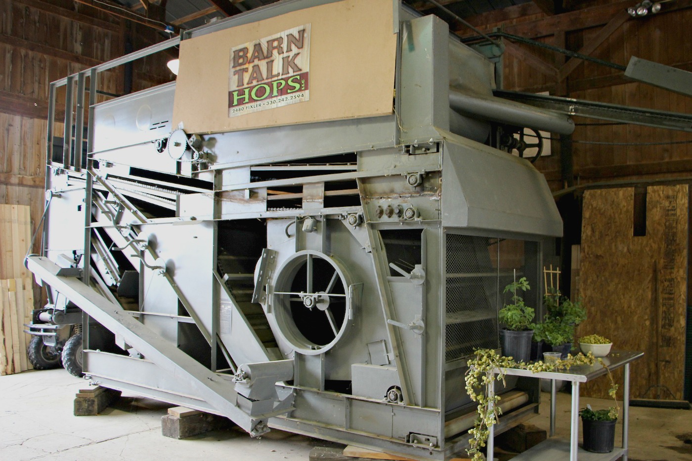 Mike and Jenny Napier purchased this Wolf WHE 170 Hopfenpflückmaschine, or Wolf harvester, before they even had a plant in the ground. (Catie Noyes photo)
