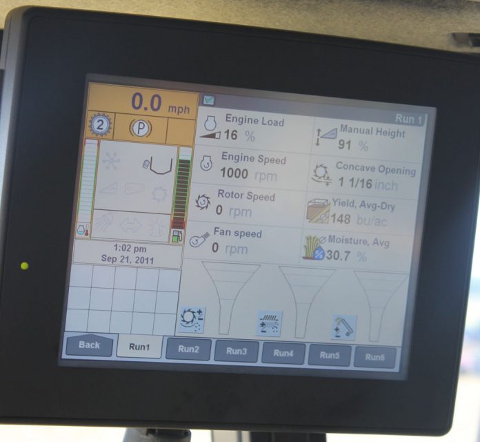 - Start the combine to check that the yield monitor display is working properly, the memory card or USB drive is installed properly, and the DGPS receiver is providing a position.