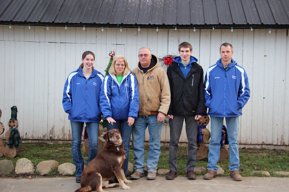 Each year, the Hershey family looks forward to putting up the lights and displays on the family farm together. Pictured from left to right: Tessa, Anita, Ted, Jared and Kerby Hershey. (Trent Hershey not pictured.)