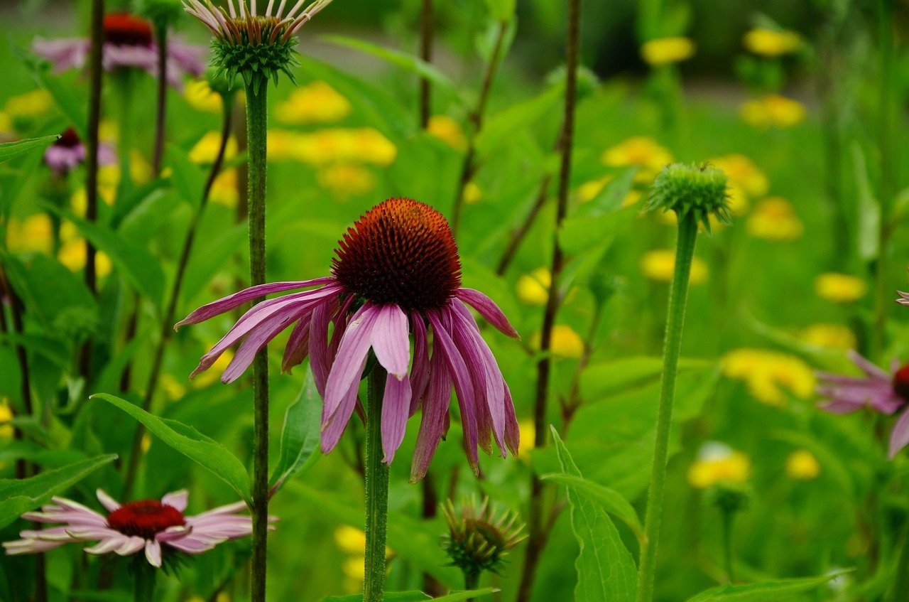 - Purple Coneflower – Attracts pollinators and hummingbirds and adds to the aesthetics of your landscape. It grows to a height of 2-3 feet and gets purple blooms in the summer.