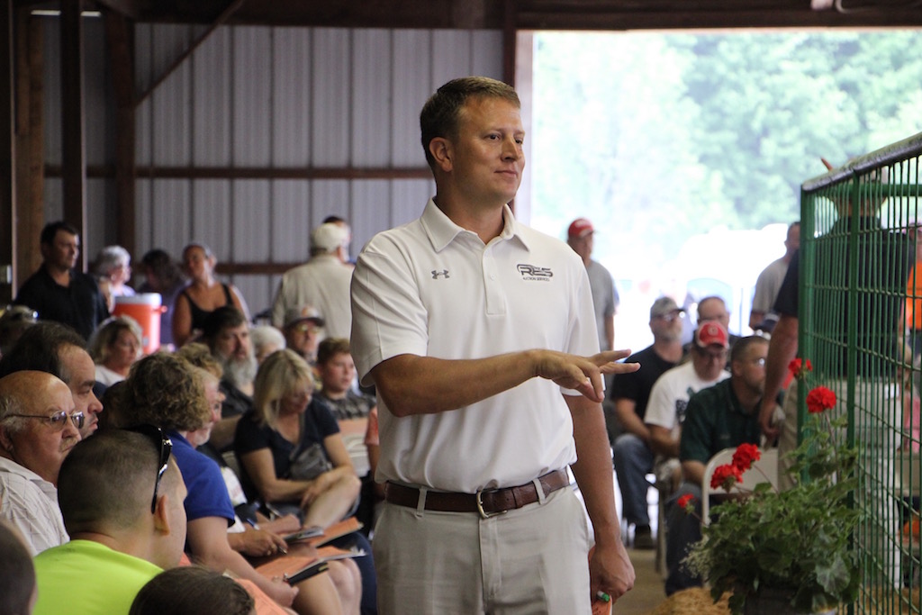 Andy White takes bids during the Trumbull County Junior Fair Livestock Sale in July. (Catie Noyes photo)