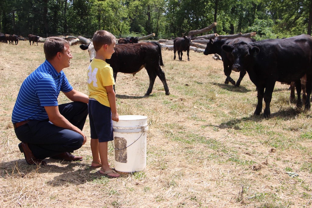 Andy White said there is no better way to raise children than on the family farm. Ruger, the oldest of White’s three boys, helps his dad feed the cattle on their farm in Ashland, Ohio. (Catie Noyes photo)