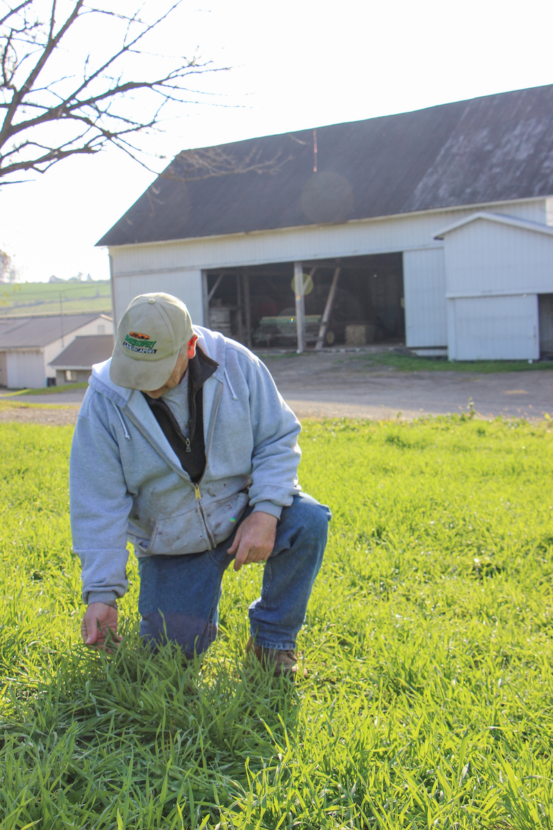 Kelly McKelvey’s use of cover crops is just one of the reasons he was selected as Wayne Soil and Water Conservation District’s Cooperator of the Year. This rye grass, planted in the fall, is used to help lock in soil moisture, restore nutrients to the soil and serve as an additional forage for the dairy herd. (Catie Noyes)