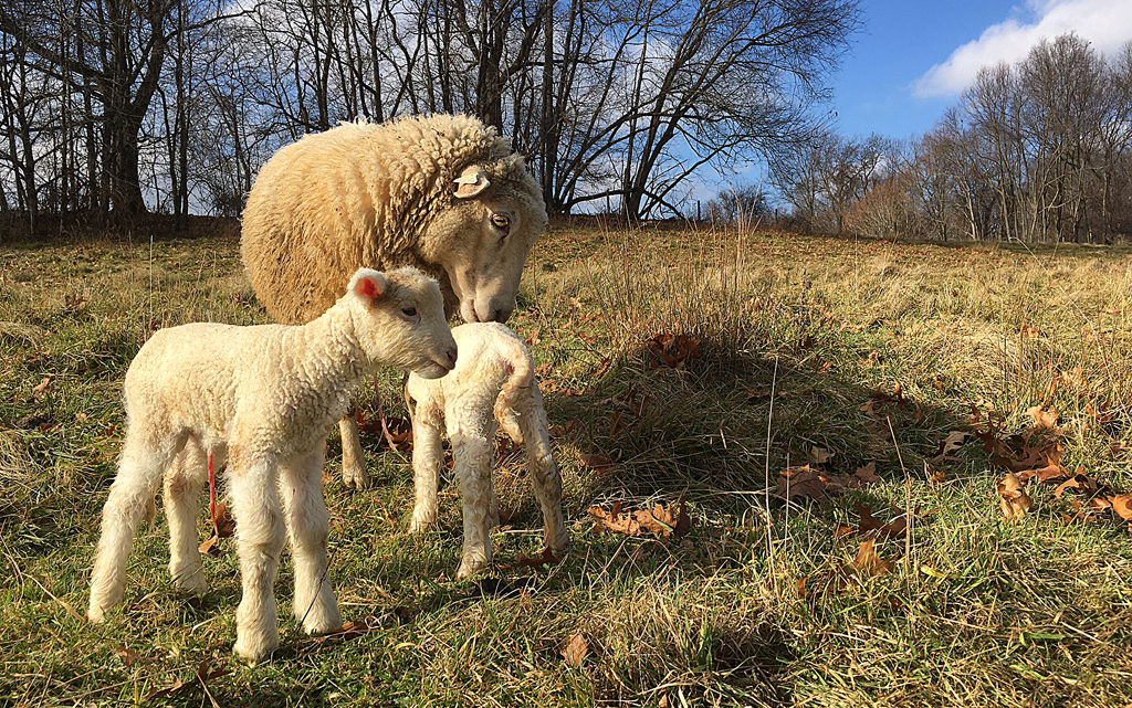 One Sunday morning, I got up to do an early morning lamb check, after the remnants of the destructive storm that had slammed Kentucky and other states in mid December swept through. After a tempestuous day that knocked over shelters and blew others over fences, that morning was eerily calm. I looked out the window and noticed two ewes standing by themselves, where the flock had sheltered from the wind. They were accompanied by two newborn lambs.