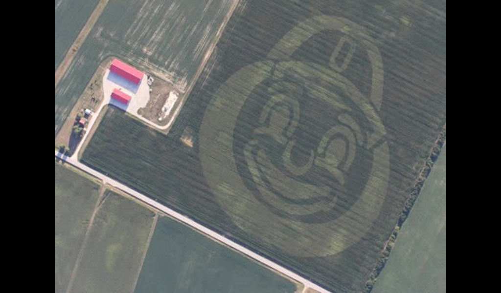 Since mid-June, The Ohio State University mascot has been seen (from the air) in a cornfield north of London, Ohio, and will remain there until harvest.