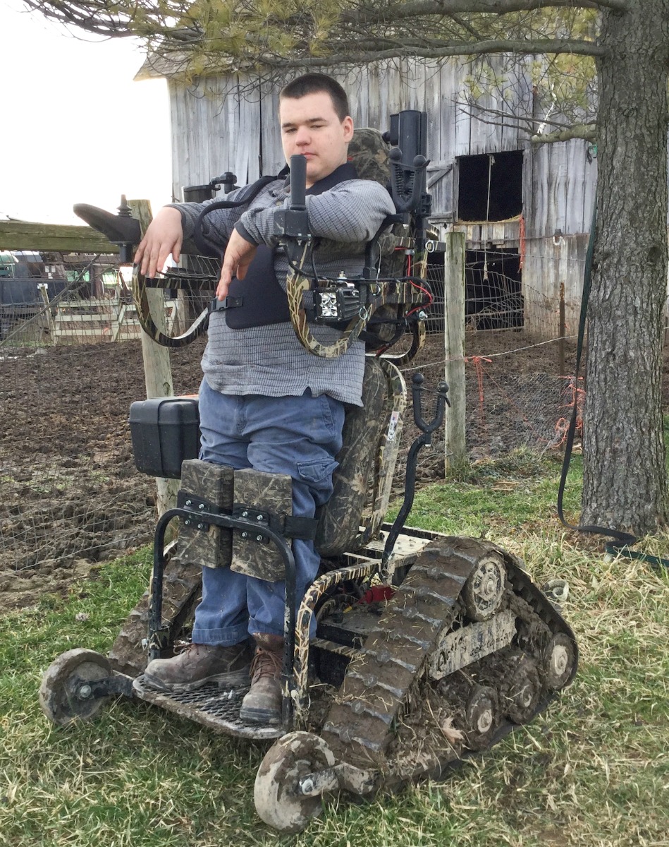 Austin Yaworksy, of Wakeman, Ohio, had his dream come true on Christmas Day when he received his Action Trackstander. The Trackstander allows Austin to stand up and travel over some of the most challenging terrain. It’s given him back his independence. (Catie Noyes photos)
