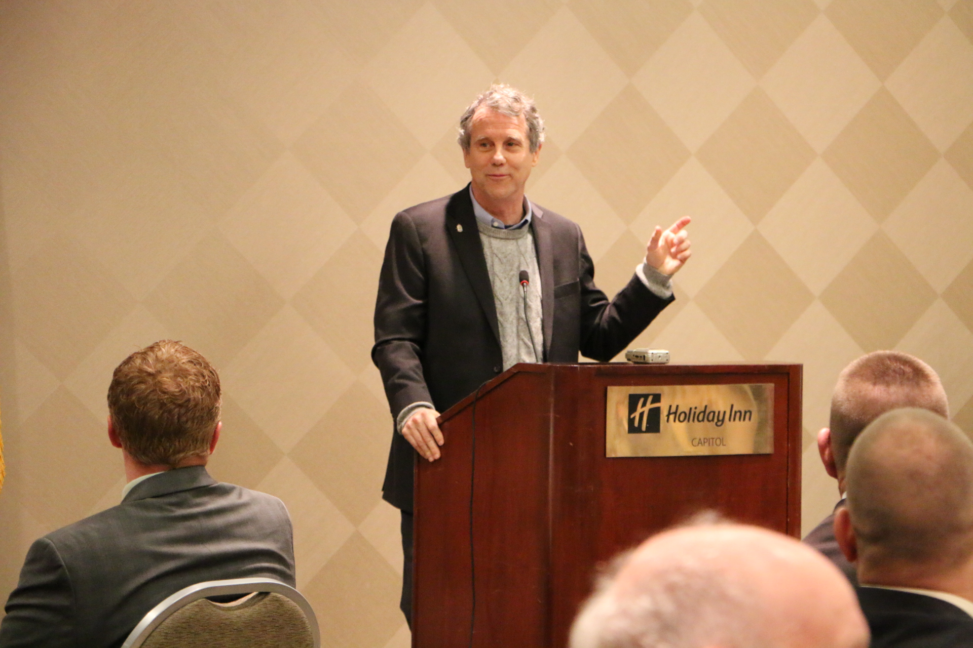 Over breakfast, Sen. Sherrod Brown addresses Ohio Farm Bureau leaders by sharing his thoughts on agricultural trade and taxes as well as health care and the opioid crisis.