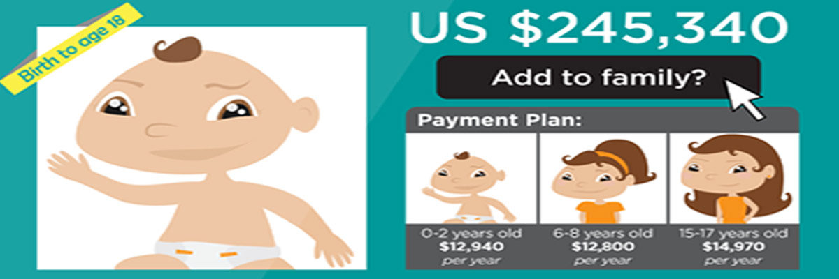 The report shows that a middle-income family with a child born in 2013 can expect to spend about $245,340 ($304,480 adjusted for projected inflation*) for food, housing, childcare and education, and other child-rearing expenses up to age 18. Costs associated with pregnancy or expenses occurred after age 18, such as higher education, are not included.