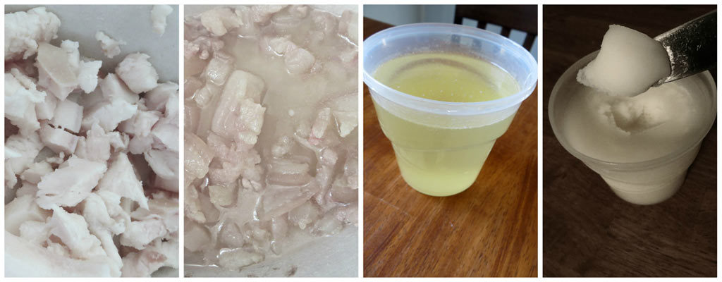 5. Allow rendered liquid to cool slightly. Pour into clean jars.