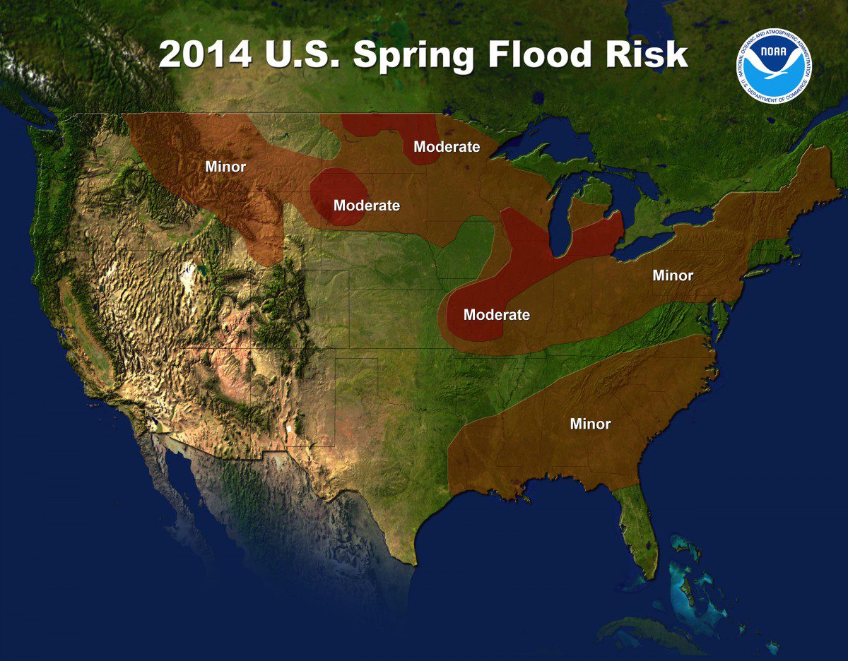 “This year’s spring flood potential is widespread and includes rivers in highly populated areas putting millions of Americans at risk,” said Louis Uccellini, director, NOAA’s National Weather Service.