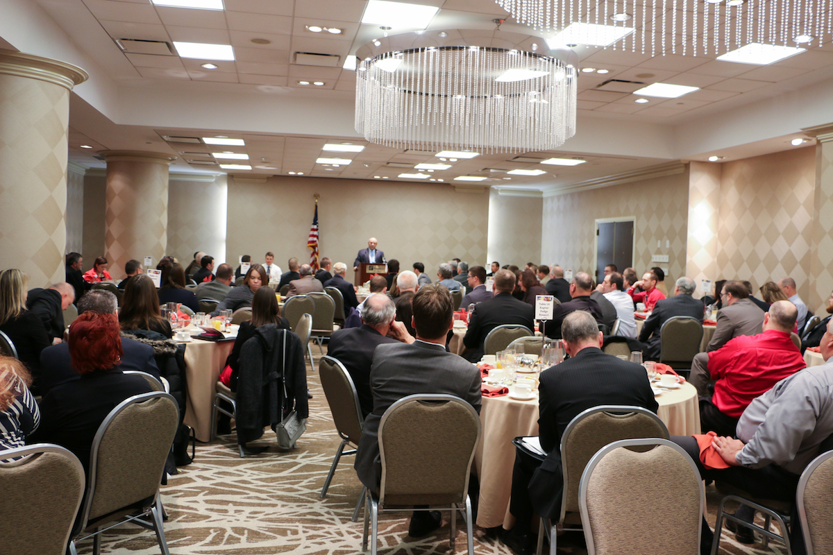 Ohio Farm Bureau leaders listen to American Farm Bureau President Zippy Duvall, who made a surprise appearance during the OFBF County Presidents’ Trip March 14.