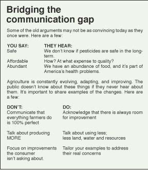 Agriculture has made improvements in telling its story, and there are many opportunities to continue this process. Consider using some of the suggestions offered here to begin a conversation with someone who has questions about agriculture.