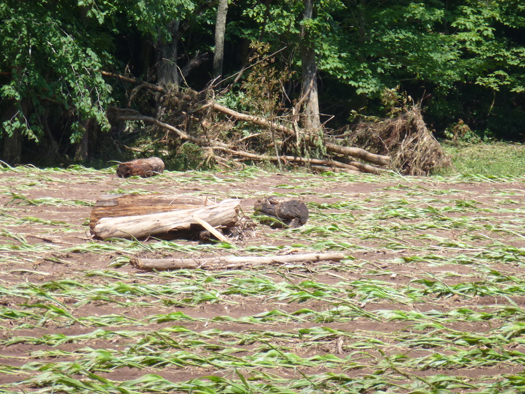 Fields of crops lay flattened and littered with debris following the flood waters that ravaged through parts of West Virginia. Producers are warned to not eat or feed any produce or hay that has been in contact with flood waters because of possible contamination. (W.Va. FSA photo)