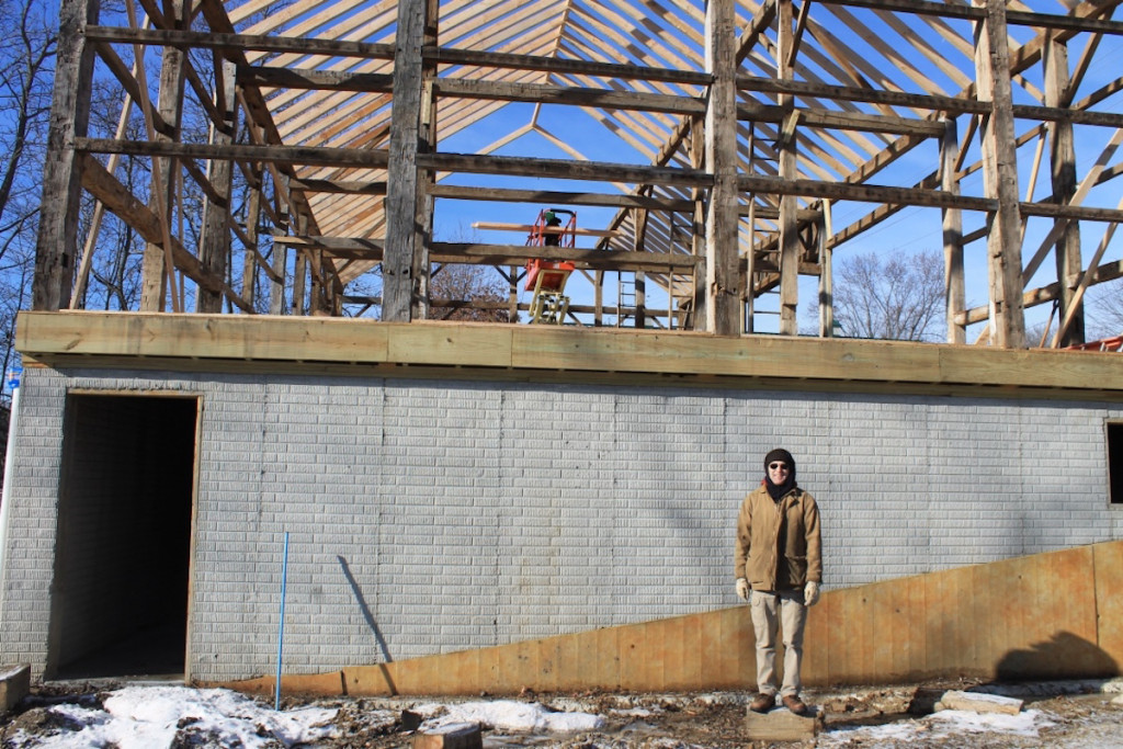 He hired an architect Chuck Bultman, Ann Arbor, Michigan, who specializes in timber frame barns to design the foundation, floor supports, insulation scheme and window layout.