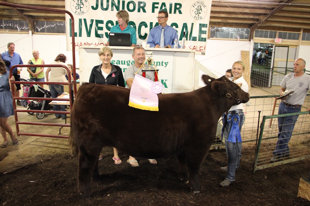 The Geauga County Fair reserve champion steer, weighing 1,224, was shown by Kate Hornyak and purchased by Pete Sugarman and Jolie Chapman, of Chagrin and Middlefield Napa, for $4 per pound.