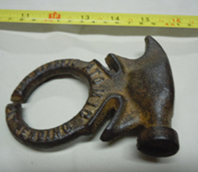 Gailey Henderson, of Williamstown, W.Va., and David Hodges were quick to email us that Item No. 1114 was a “saddle hammer,” or a fencing repair tool that was made to fit over a saddle horn. While on horseback, a ranch hand could easily use the multi-tool that included a hammer, wire splicer and fence staple puller.